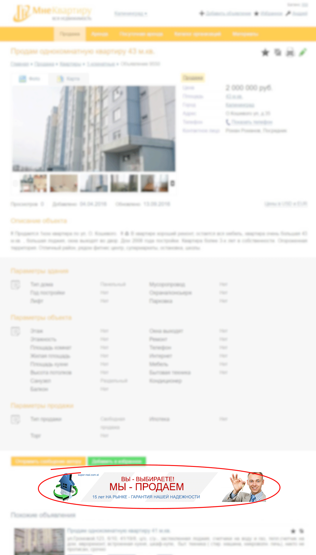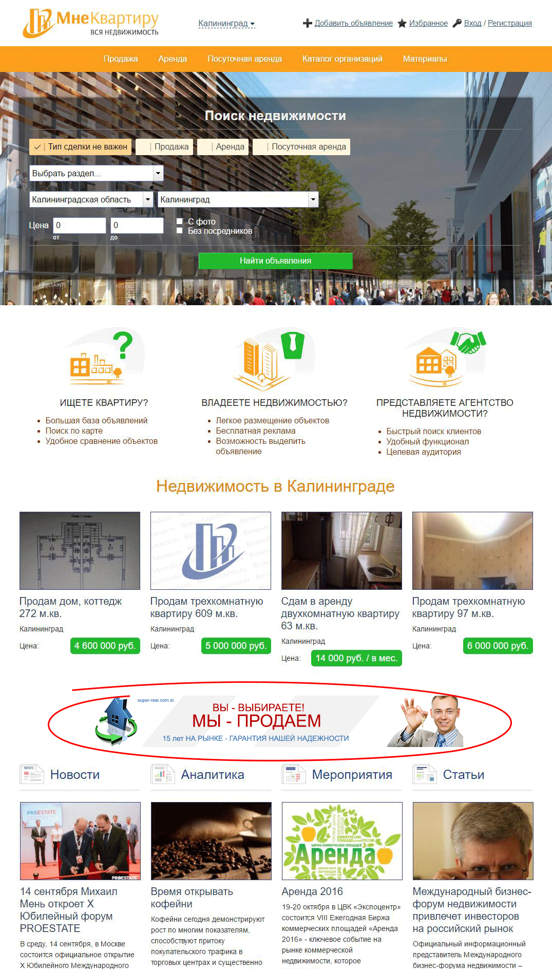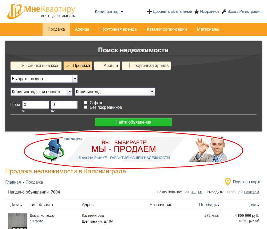 Реклама на сайте МнеКвартиру